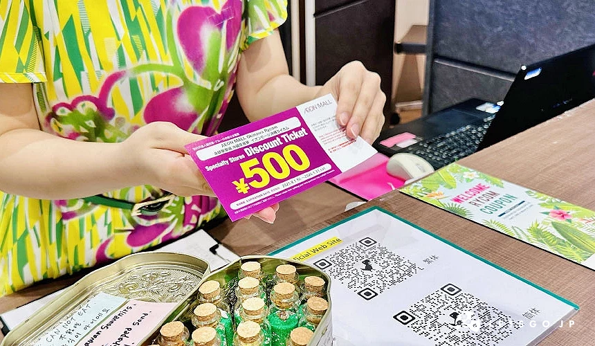 抵達「永旺夢樂城沖繩來客夢」之後,別忘了先到1樓的旅客服務中心,出示本文優惠券,領取滿5,000日圓可使用的500日圓購物券以及加碼五張商場內特典優惠券(限紙本)。如果在商場內一共購物滿10,000日圓以上(含500日圓購物券),在這裡出示發票還能換取回程152號公車的免費乘車券,等於省下一趟980日圓(至那霸巴士總站)或1,120日圓(至那霸機場)的旅費!