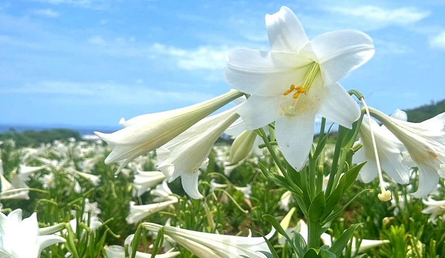 沖繩因為緯度低,花季線也比日本本島還要早,因此櫻花季不是落在春天,反而由杜鵑、百合爭奇鬥豔。「東村杜鵑花祭」每年3月在沖繩北部國頭郡「東村村民之森」舉行,沿著公園山坡種植近5萬株的各色杜鵑,常見的桃紅、玫瑰紅、白色、粉白相間都有,花海背後就是整片海洋絕景,場面壯麗。「伊江島百合花祭」每年4月底至5月初舉行,在「百合野外公園」山坡上種植100多種不同顏色的麝香百合,是全日本最早的百合花祭。「那霸龍舟賽」則是從琉球時期就從中國傳來的習俗,同樣在農曆5月5日舉行,祈求豐漁與海上安全。每年都由沖繩當地中學生、社會人士組隊競賽,近年還有外國人報隊參戰,逐漸成為國際級賽事!