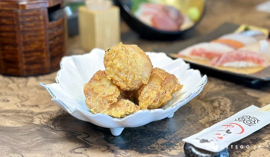 壽司之外也能品嚐到來自北海道的人氣在地美食「炸雞(ザンギ)」。與一般的日式炸雞(唐揚げ)不同,北海道炸雞(ザンギ)會先以醬油、蒜末與薑汁等調味料醃漬入味,再裹粉油炸。外皮微脆帶甜、肉質結實又柔軟,肉汁飽滿,很有份量,令人欲罷不能,搭配一杯冰涼的日本酒或沖繩啤酒,簡直是完美組合。一顆只要190日圓,無論是當作配菜、下酒菜或單吃都超過癮,感覺比便利商店的炸雞還划算!