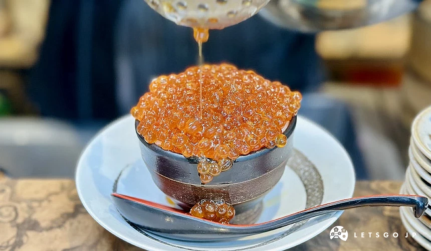 源自「CHOKOTTO 壽司」北海道札幌本店的「鮭魚卵蓋飯(えぞっこ飯)」可是招牌名物,如今在日本最南端的沖繩也吃得到囉!上桌時,壽司師傅會在客人面前豪邁地將鮭魚卵一匙又一匙地淋在米飯上,直到滿出來、掉下來,充斥著滿滿的儀式感與視覺衝擊,令人驚嘆連連,現場氣氛也隨之高漲。