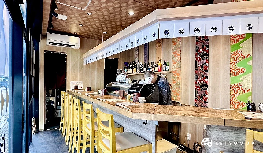 「CHOKOTTO壽司 櫻坂店」位於熱鬧的國際通旁,距離牧志站步行約8分鐘,若是住宿在HYATT Regency Naha 沖繩那霸凱悅酒店更是走出飯店就到,交通超便利。店內座位以溫暖的木質吧台為主,能近距離看到職人以熟稔的技法料理食材、捏成壽司的過程,甚至能自在地與師傅閒聊。店舖整體氛圍溫馨親切,光線明亮溫暖,即使是一人前往也不會感到拘謹,能自在品味每一貫壽司的細節。
