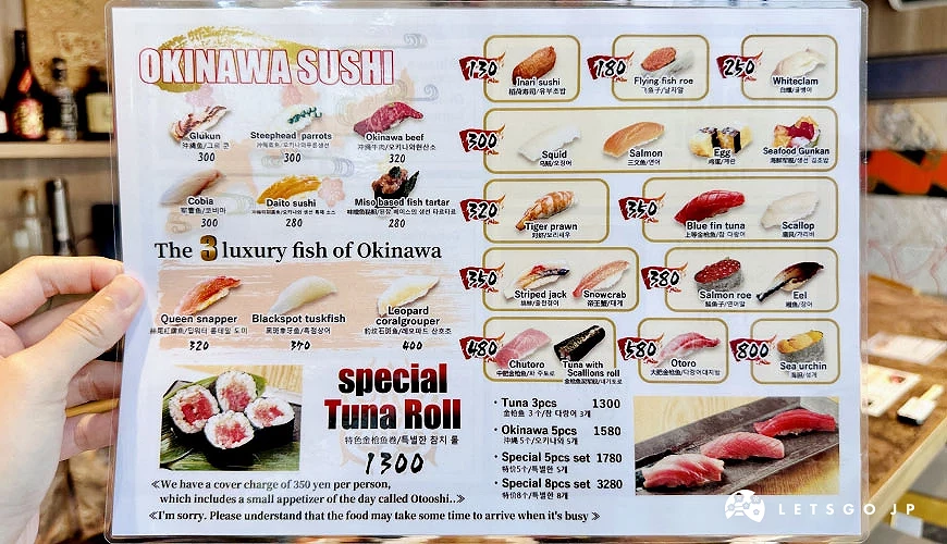 「CHOKOTTO壽司」來自北海道札幌,秉持著「將新鮮魚貨傳遞給更多人」的理念,將北國漁港捕獲的珍味一路直送到南國沖繩。壽司由經驗豐富的職人現場捏製,魚肉的油脂與醋飯完美交織。店內人氣料理除了壽司外,還有北海道名物「鮭魚卵蓋飯(えぞっこ飯)」以及「螃蟹湯(てっぽう汁,又名鐵砲湯)」。無論想體驗華麗的海膽鮭魚卵軍艦,還是品嚐在地魚種「琉球黃鰭棘鯛(琉球スギ)」的清甜,都能在這裡一次滿足。