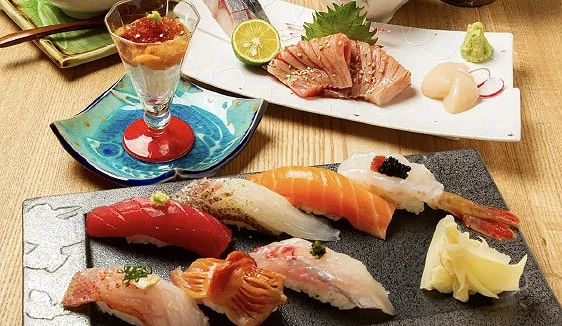 想一次品嚐各種風味,推薦直接來一份「壽司拼盤」。精選北海道與沖繩當季漁獲組合而成,從油脂豐富的中トロ、鮭魚卵與海膽軍艦,到清爽的白身魚與香甜的帆立貝,每一貫都展現出不同層次的鮮甜。炙燒壽司表面微微焦香,咬下瞬間帶出油脂香氣;而海膽與鮭魚卵則在口中化開,濃郁鹹香的滋味讓人忍不住露出滿足笑容。提供的食材雖然會依季節有所調整,但經典美味絕對少不了!
